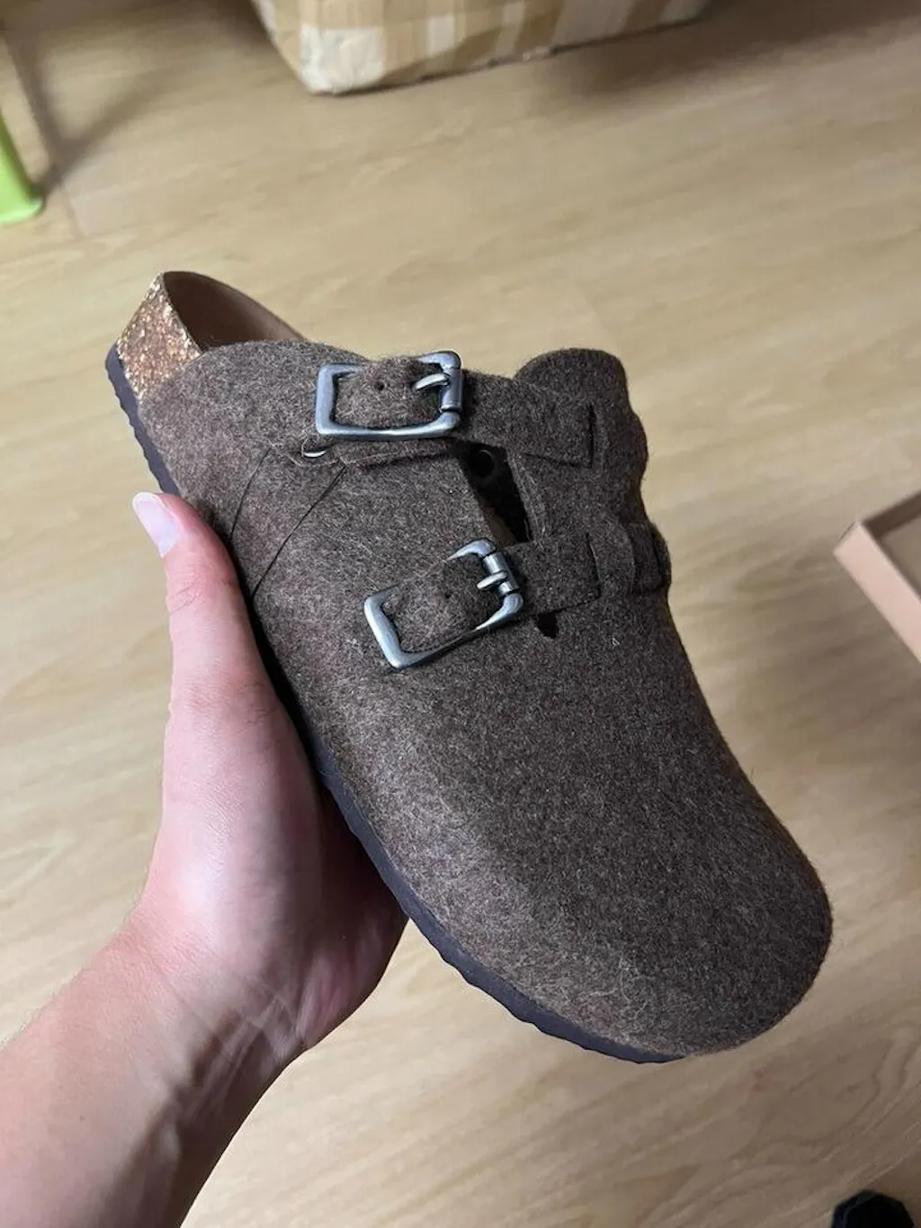 Slip-On Mules – Wool Felt Double-Buckle House Shoes